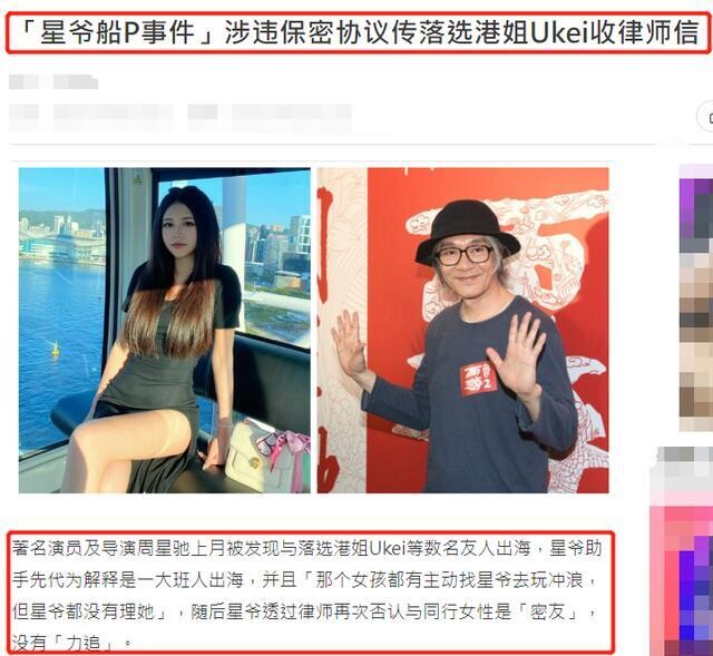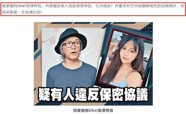 تاراتقۇلار خەۋىرىگە ئاساسلانغاندا، يېقىندا داڭلىق ئارتىس، رېژىسسور جوۋ شىڭچى (周星驰) ئادۋوكاتلىق خېتى چىقىرىپ بۇنىڭدىن بۇرۇنقى دېڭىز ساھىلىدا چۈشكەن سۈرەتلەرنى باشقىلارنىڭ ئاشكارىلىۋەتكەنلىكىنى، شۇ سەۋەبتىن پىتنە-ئىغۋا تارقىلىپ ئۆزىنىڭ ئىناۋىتىگە تەسىر يەتكەنلىكىنى، ئەگەر سۈرەتنى چىقارغۇچىنىڭ بارلىق سۈرەتلەرنى ئۆچۈرىۋەتمىسە قانۇن ئارقىلىق بىر تەرەپ قىلىدىغانلىقىنى ئېيتقان.